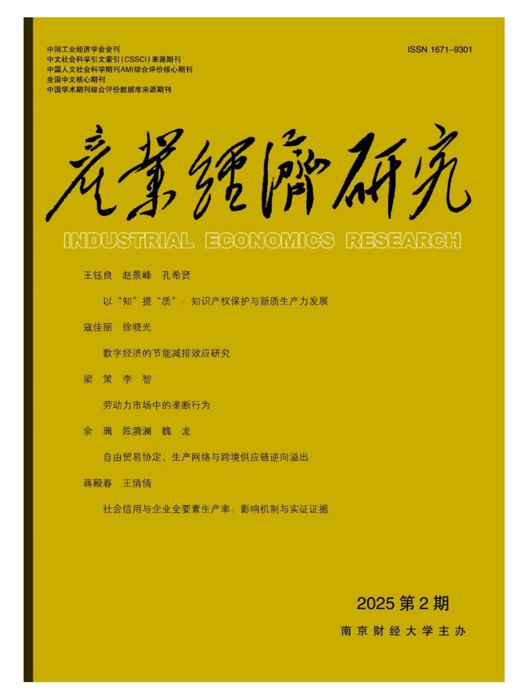 近日,由经济学院教授余珮、博士研究生陈漪澜和魏龙教授合作完成的论文《自由贸易协定、生产网络与跨境供应链逆向溢出》在国内经济学科权威期刊《产业经济研究》2025年第2期发表,武汉理工大学经济学院为该文第一作者单位。该文为魏龙教授主持的国家社会科学基金重大项目(19ZDA054)的阶段性成果。