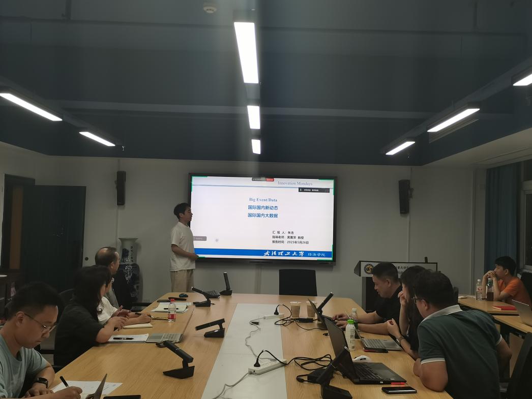 会议第四项,朱浩博士生分享了Big Data & Big Events。朱浩同学围绕美国商务部发布“全球禁用华为昇腾芯片”的指南、英欧双方签署新渔业协议、中国与东盟十国全面完成自贸区3.0版谈判、《国际贸易问题》关于人工智能工具使用规定等近期热点事件进行分享,并对国家数据局发布的《全国数据资源调查报告(2024年)》作了简要介绍。魏龙教授在点评中特别指出,应关注“特朗普—哈佛大学事件”所折射出的深层次议题,思考其对未来国际教育环境可能产生的深远影响。