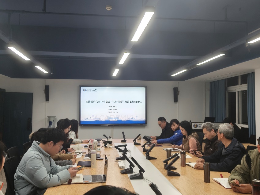 最后,张雯欣同学进行了题为《数据资产化对中小企业“专精特新”发展的影响研究》的论文汇报,主要内容包括数据资产化的测度以及其对中小企业“专精特新”发展的影响。赵玉林教授与胡威老师在点评中提出,论文需对数据资产化与数据资产的概念作出明确界定,同时要重点攻克数据资产化过程的测度难题,让研究方法与研究结论更具科学性。