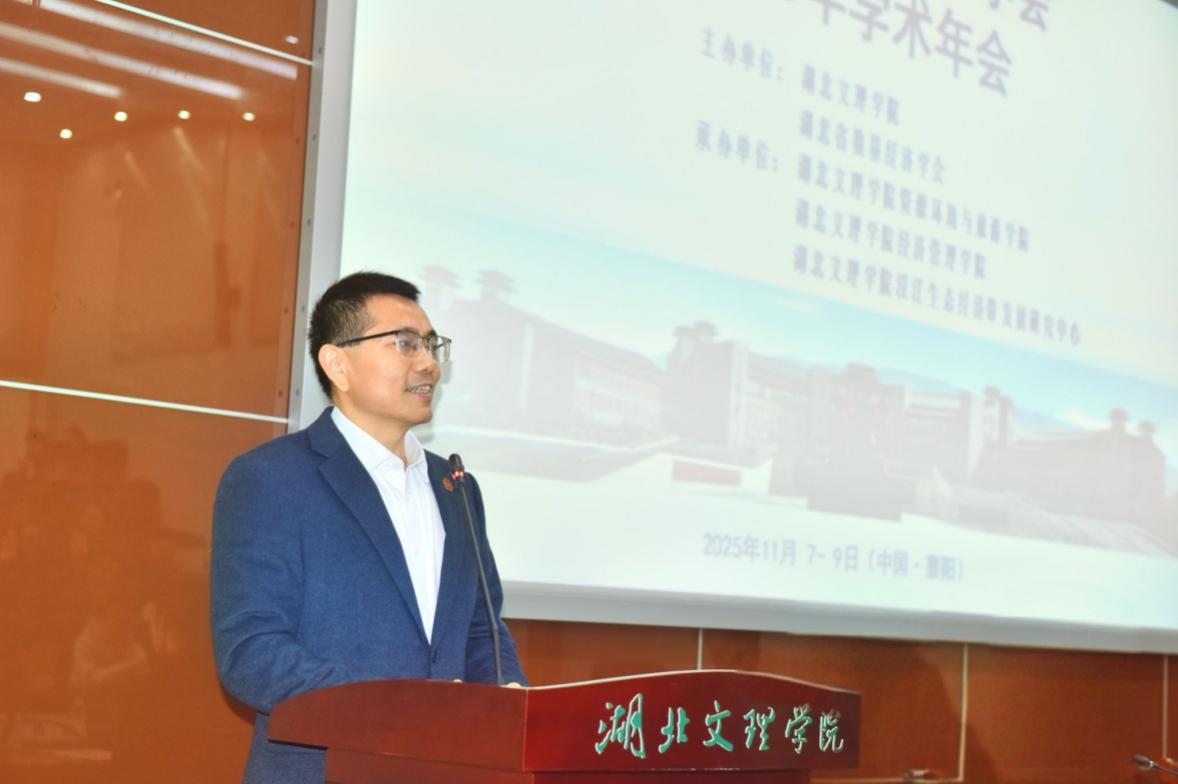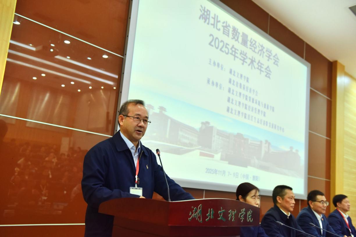 作为学会会长单位、理事长单位,经济学院全程主导年会的统筹协调与筹备工作。学会会长、经济学院首席教授魏龙牵头组织各项事宜,设于经济学院的秘书处高效落实会务细节,有力保障了年会顺利推进。开幕式由湖北省政协常委、学会常务副理事长、武汉大学邹薇教授主持,湖北文理学院党委书记吴超仲在致辞中对年会召开表示热烈祝贺,高度肯定学会在社科强省建设、学术研究及决策咨询中发挥的重要作用,特别提及我校经济学院作为会长单位对学会发展的核心支撑作用;襄阳市社科联党组成员、副主席王进出席活动并讲话,学会副理事长、经济学院彭定贇教授等与其他学会负责人一同参会,充分彰显了我校经济学院在数量经济领域的学术引领力。
